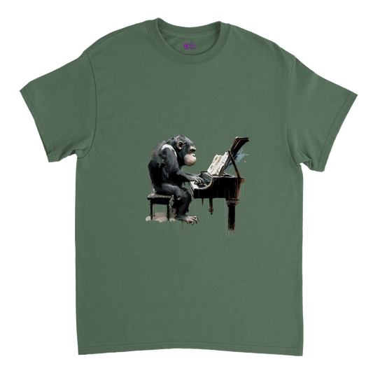 Get in Tune with the Chimp Playing the Piano: Heavyweight Unisex Crewneck T-shirt