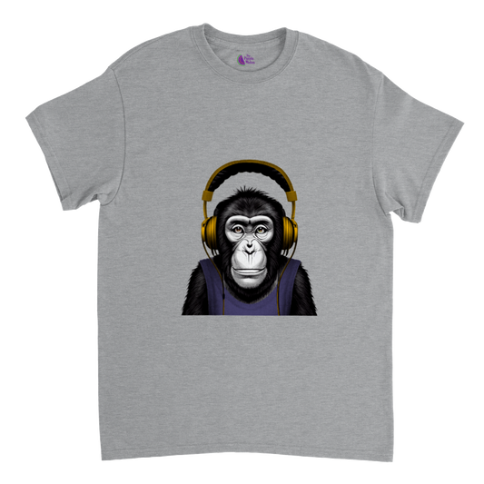Get Groovy with our Chimpanzee Listening to Music T-Shirt