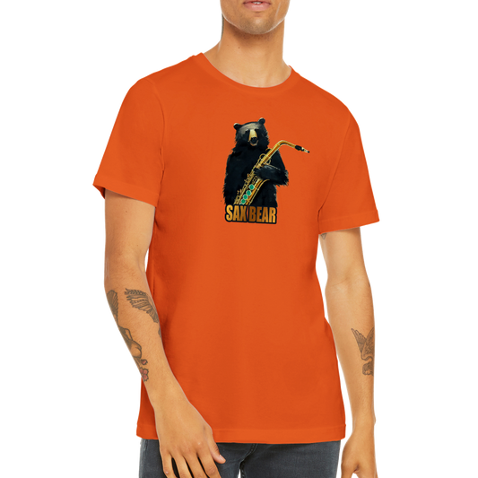 Unleash Your Inner Musician with the Sax Bear Print Premium Unisex Crewneck T-Shirt!