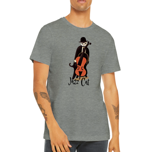 Jazz Cat Playing Double Bass Premium Unisex Crewneck T-shirt