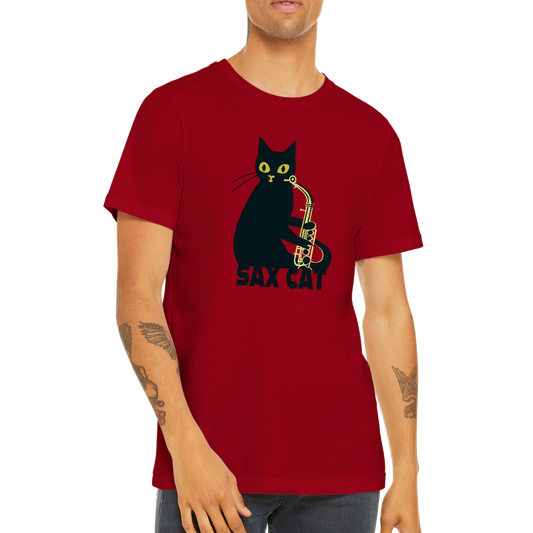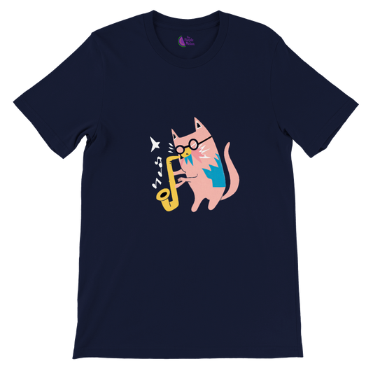 Unleash Your Inner Cool Cat with the Sax Cat Print Premium Unisex Crewneck T-shirt!