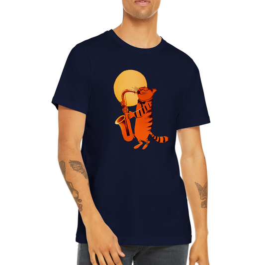 Cat Saxophonist Under Full Moon T-Shirt - Premium & Unisex