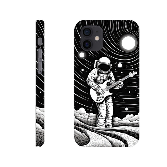 Space Serenade: Monochromatic Astronaut Guitarist in Space Phone Case