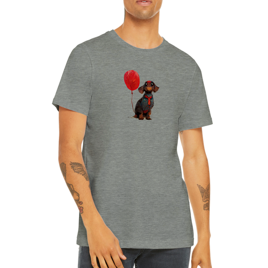 Adorable Dachshund Dog with Red Balloon Premium Unisex Crewneck T-shirt - The Perfect Blend of Style and Comfort