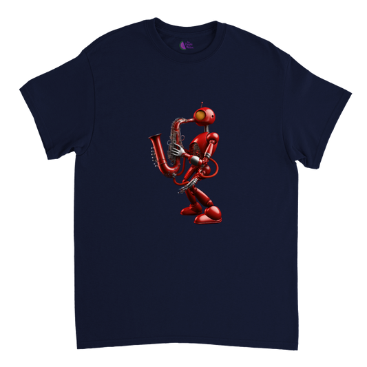 Add Some Personality to Your Wardrobe with the Robot Playing Saxophone Print T-Shirt