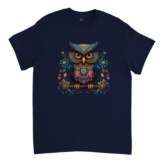 Add a Pop of Color to Your Wardrobe with Our Colorful Floral Owl Heavyweight Unisex Crewneck T-Shirt