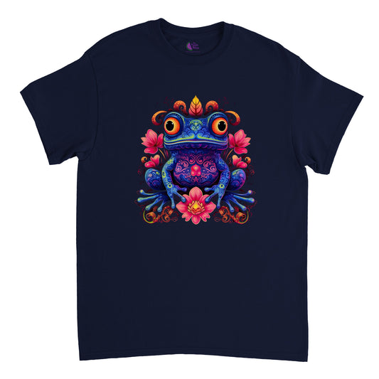 Make a Statement with our Colorful Floral Frog Print Heavyweight Unisex Crewneck T-Shirt