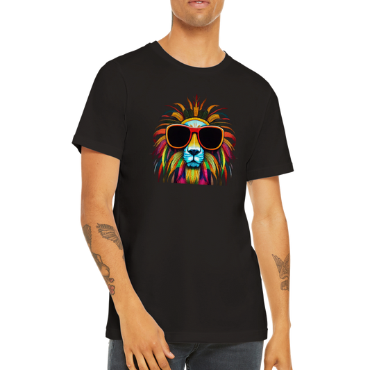 Make a Statement with Our Colourful Lion Wearing Sunglasses Premium Unisex Crewneck T-shirt