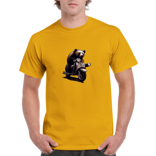 Ride in Style with the Bear Riding a Motor Scooter Heavyweight T-Shirt - A Unique and Comfortable Wardrobe Essential!