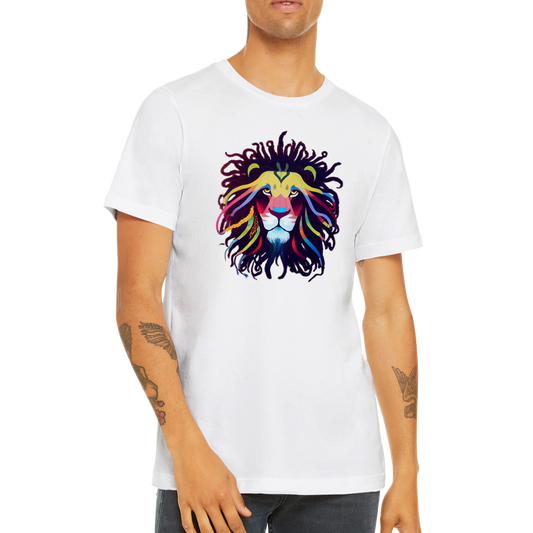 Roar in Style with our Colourful Lion with Dreadlocks Premium Unisex Crewneck T-Shirt