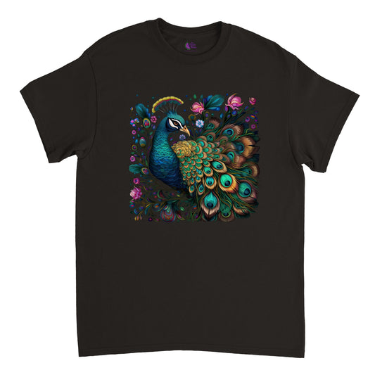 Floral Peacock Print Heavyweight Unisex Crewneck T-Shirt: Make a Statement with Style!