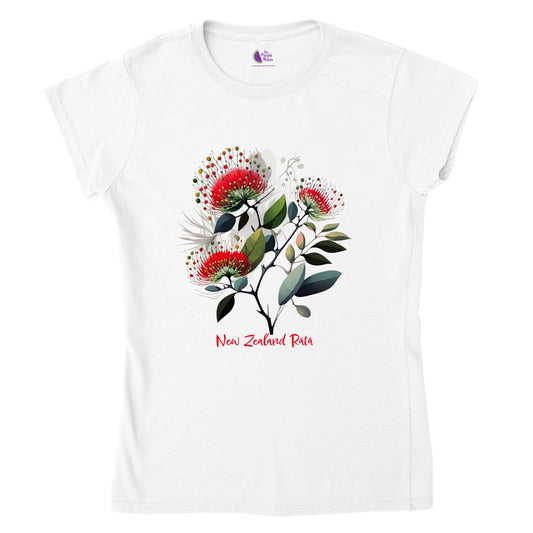 Experience the Beauty of New Zealand with Our Classic Women's Crewneck T-Shirt Featuring the Iconic Rata Flower Design