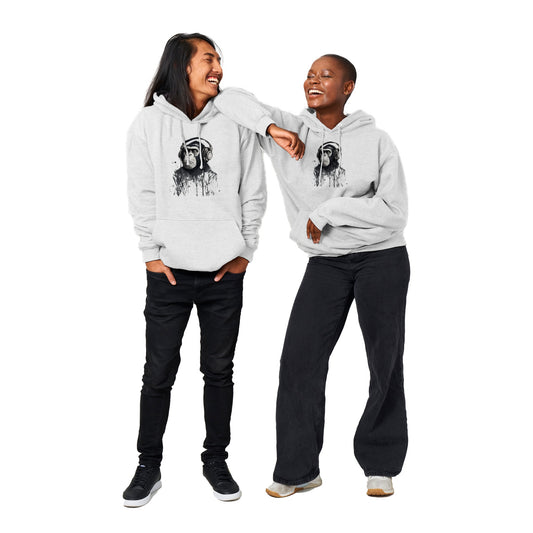 Chimpanzee Wearing Headphones Listening to Music Premium Unisex Pullover Hoodie