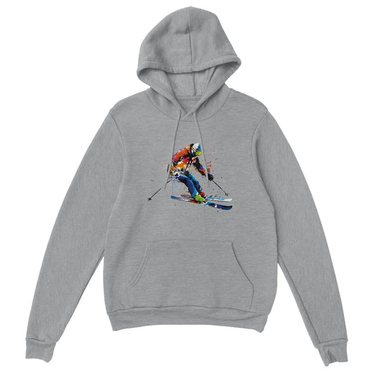 Stay Warm in Style: Classic Unisex Pullover Hoodie with Skier Print