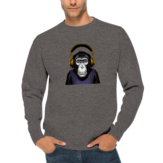 Chimpanzee Litening to Music on Headphones Premium Unisex Crewneck Sweatshirt