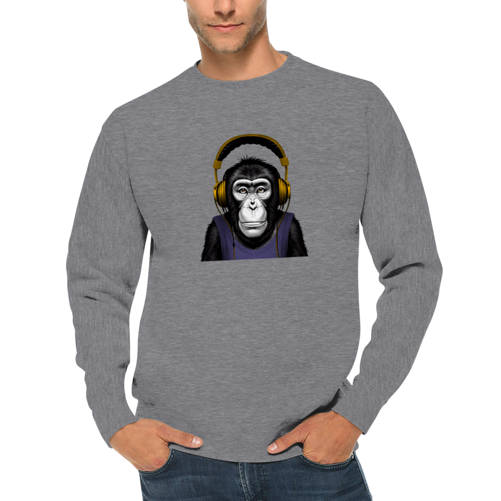 Chimpanzee Litening to Music on Headphones Premium Unisex Crewneck Sweatshirt