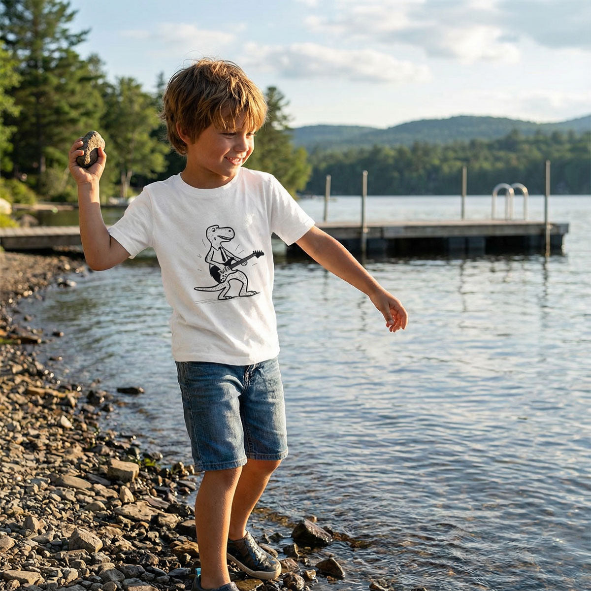 The Cool T-rex Playing Guitar Classic Kids Crewneck T-shirt is the perfect choice for any young music lover with a sense of humor. Featuring a fun and playful design of a T-rex rockin' out on guitar, this shirt is sure to be a hit with kids of all ages.