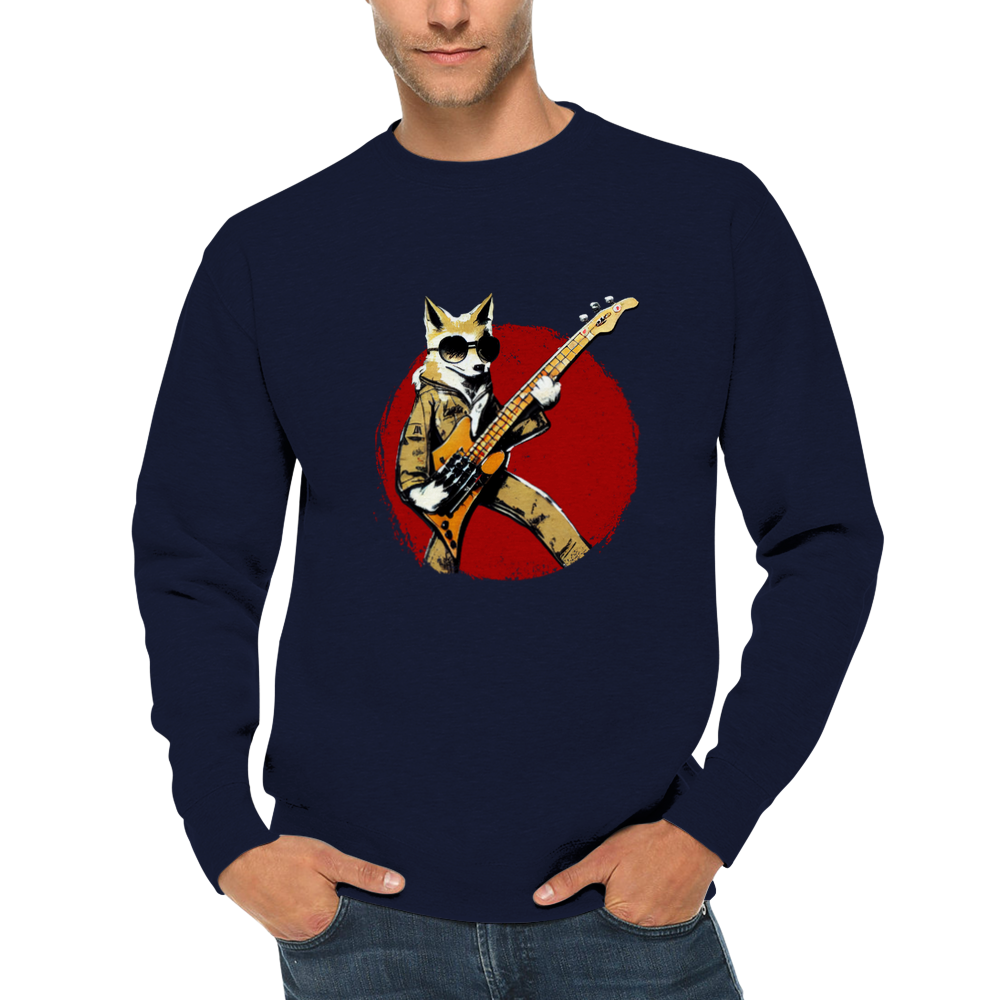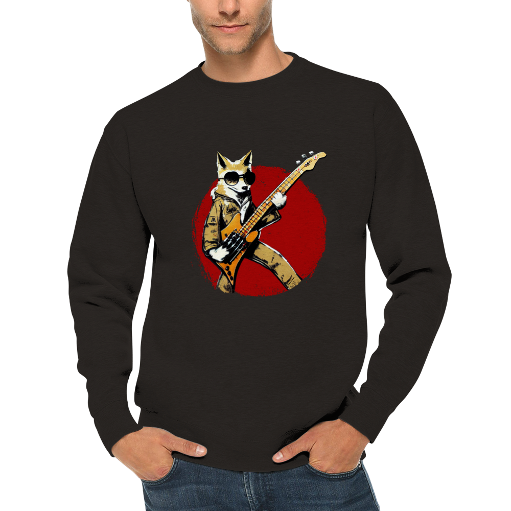 Fox Playing a Bass Guitar Premium Unisex Crewneck Sweatshirt