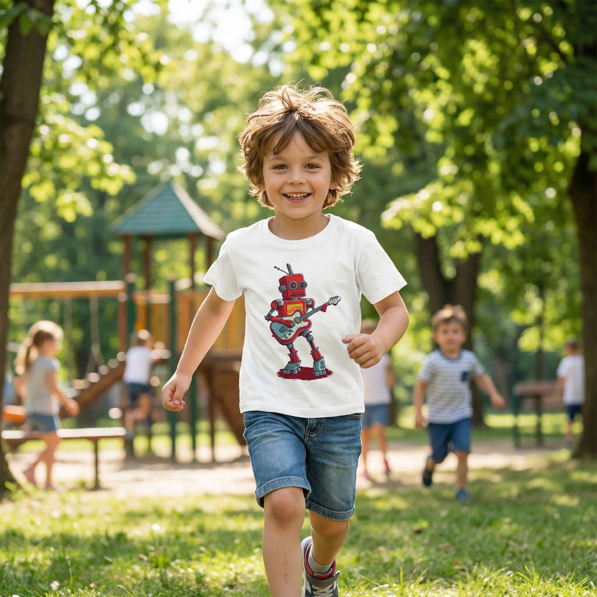 Robot playing the guitar Classic Kids Crewneck T-shirt
