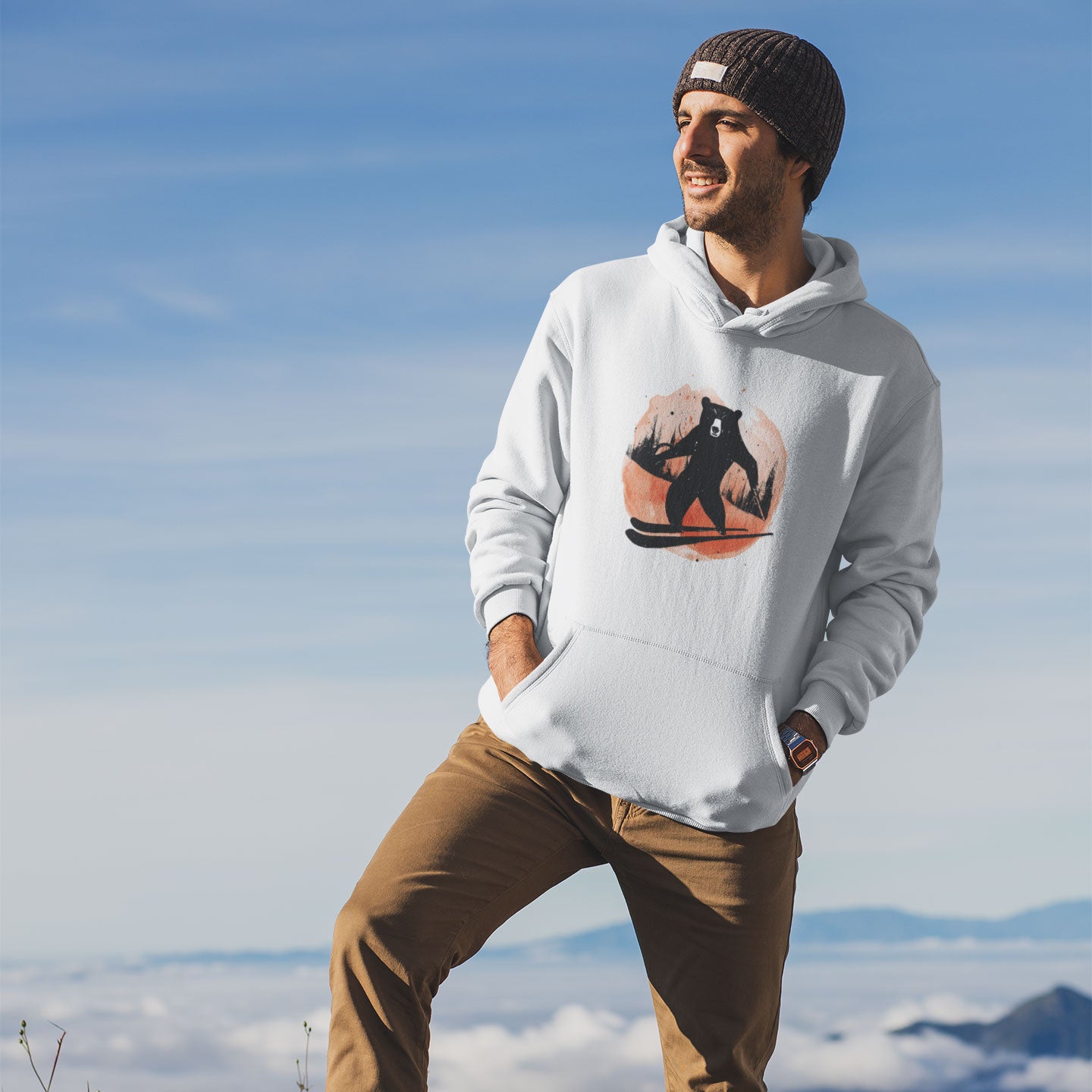 Skiing Bear Print Premium Unisex Pullover Hoodie