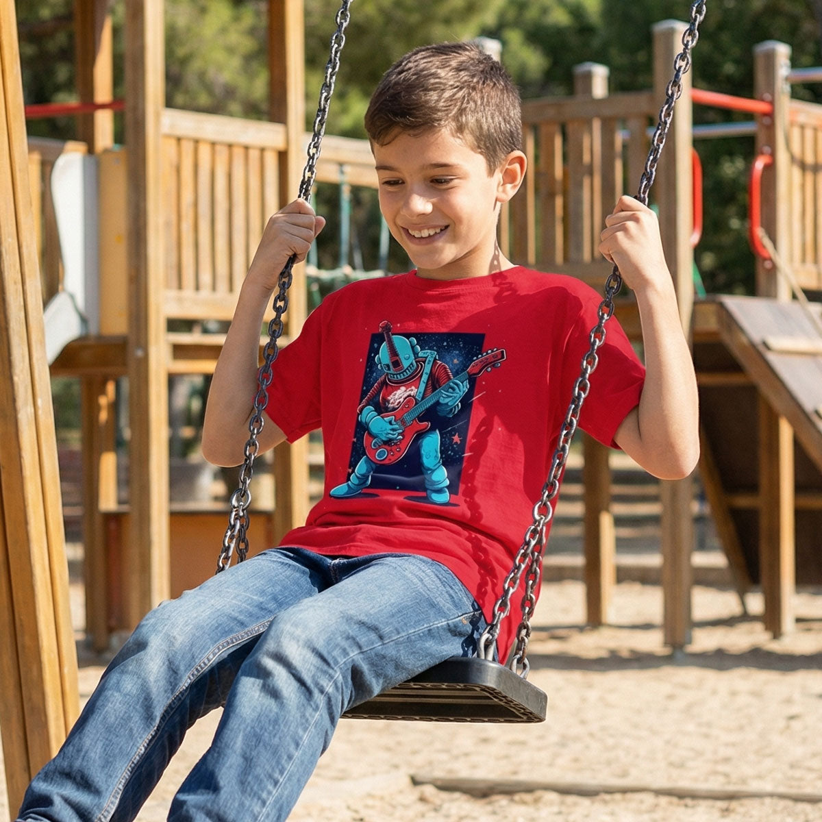 Space Robot Playing Guitar Classic Kids Crewneck T-shirt
