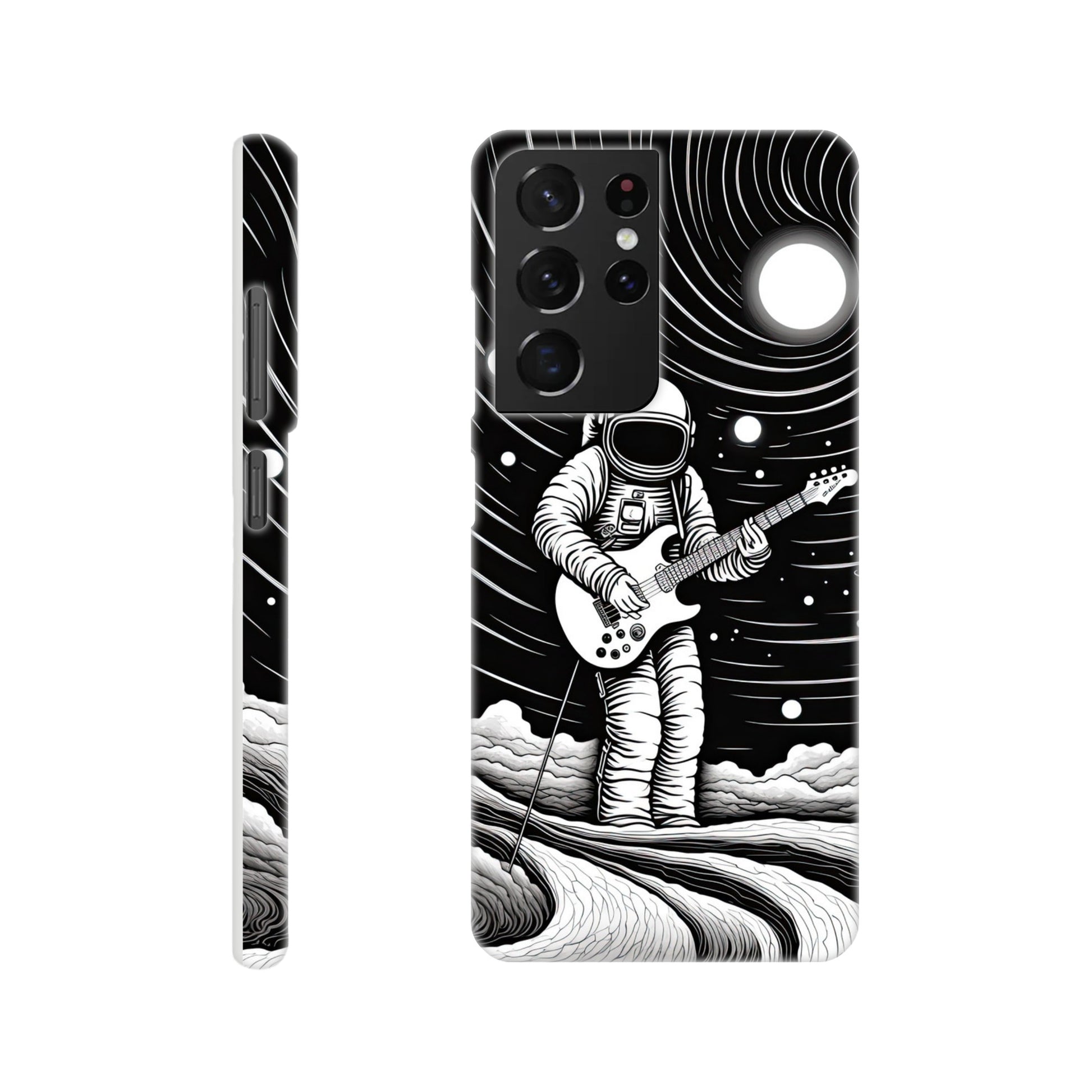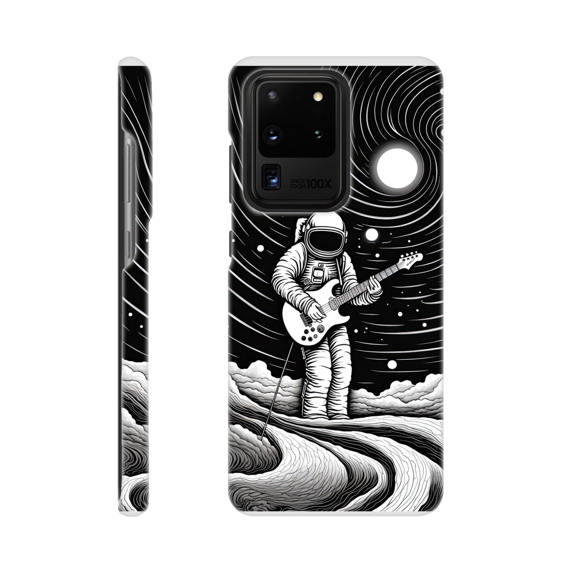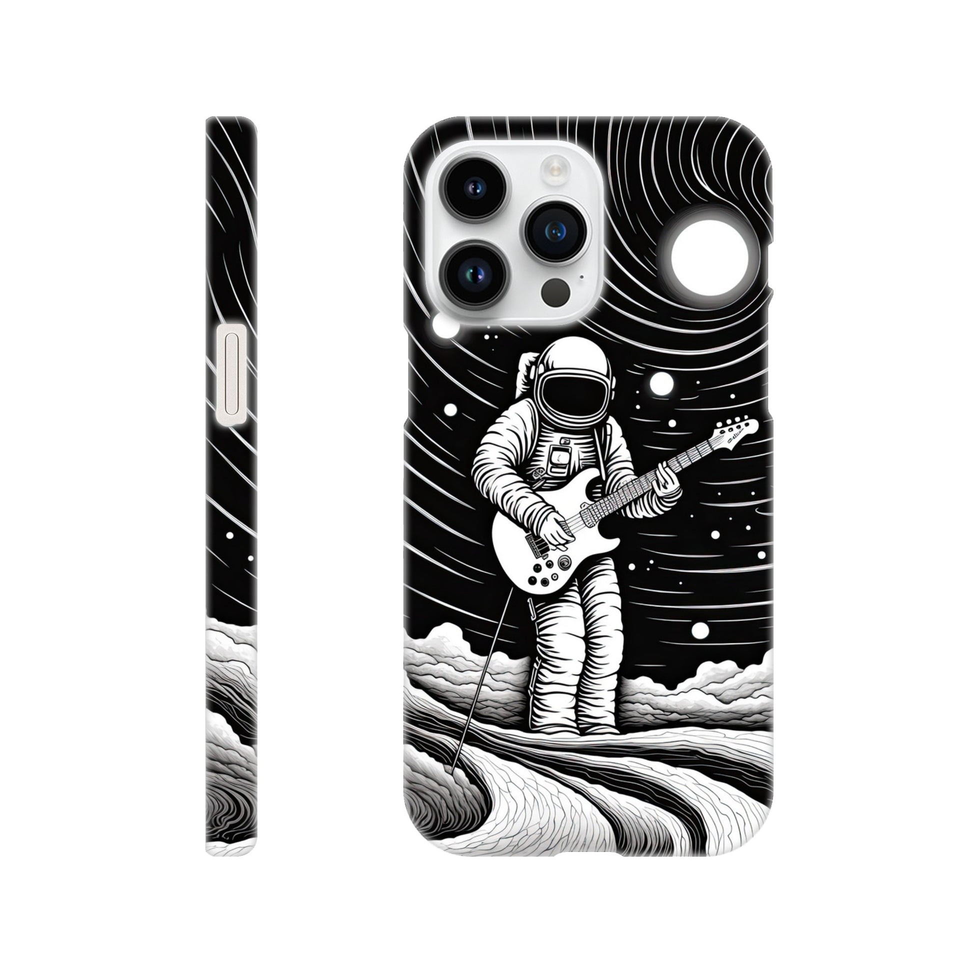 Astronaut Guitarist: The focal point of this design is the astronaut floating gracefully in space, strumming a guitar. This imaginative scene adds a touch of surrealism to your phone case, evoking a sense of wonder and creative exploration.