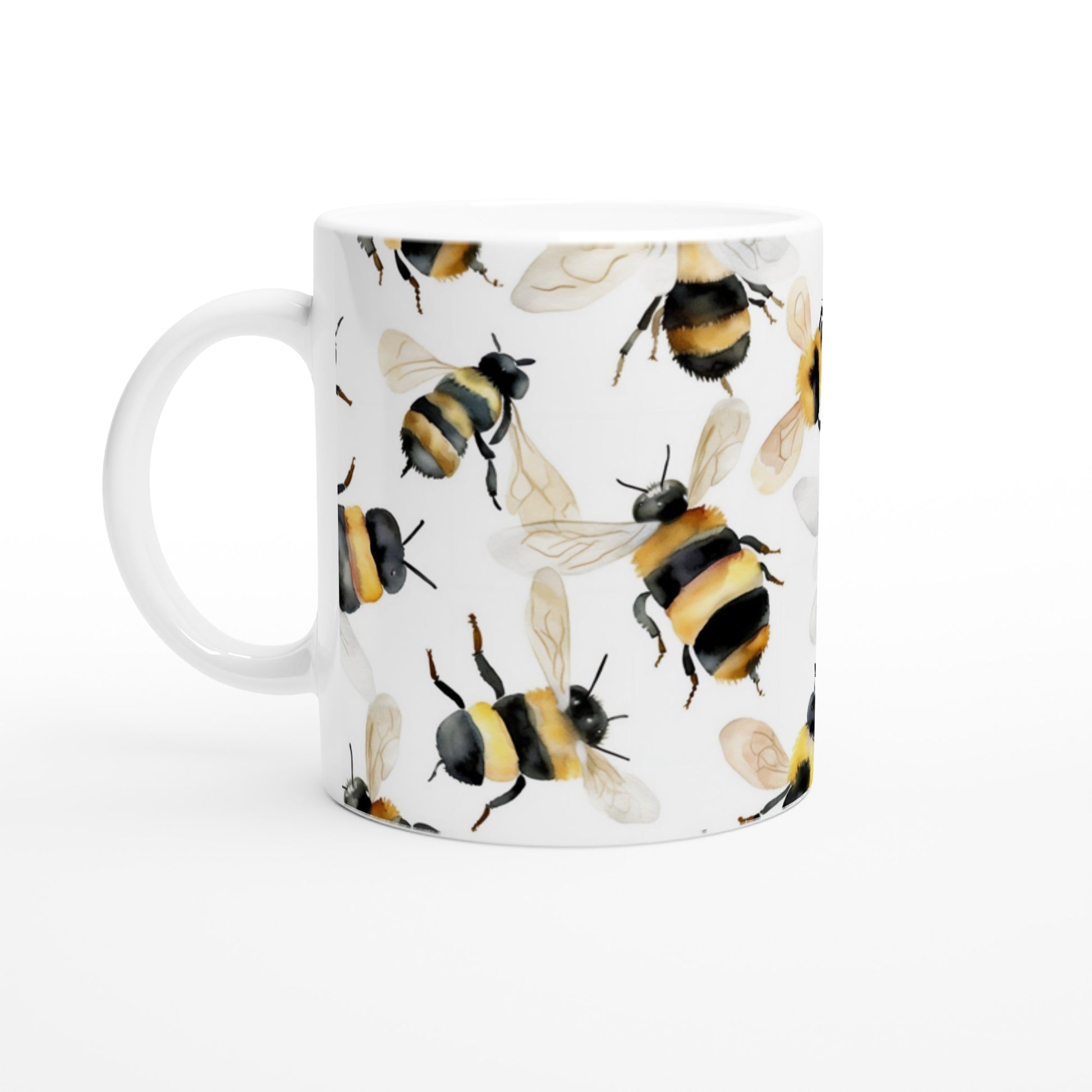 Bumble Bee Bliss: 11oz Ceramic Mug with Watercolor Painted Bumble Bees Pattern