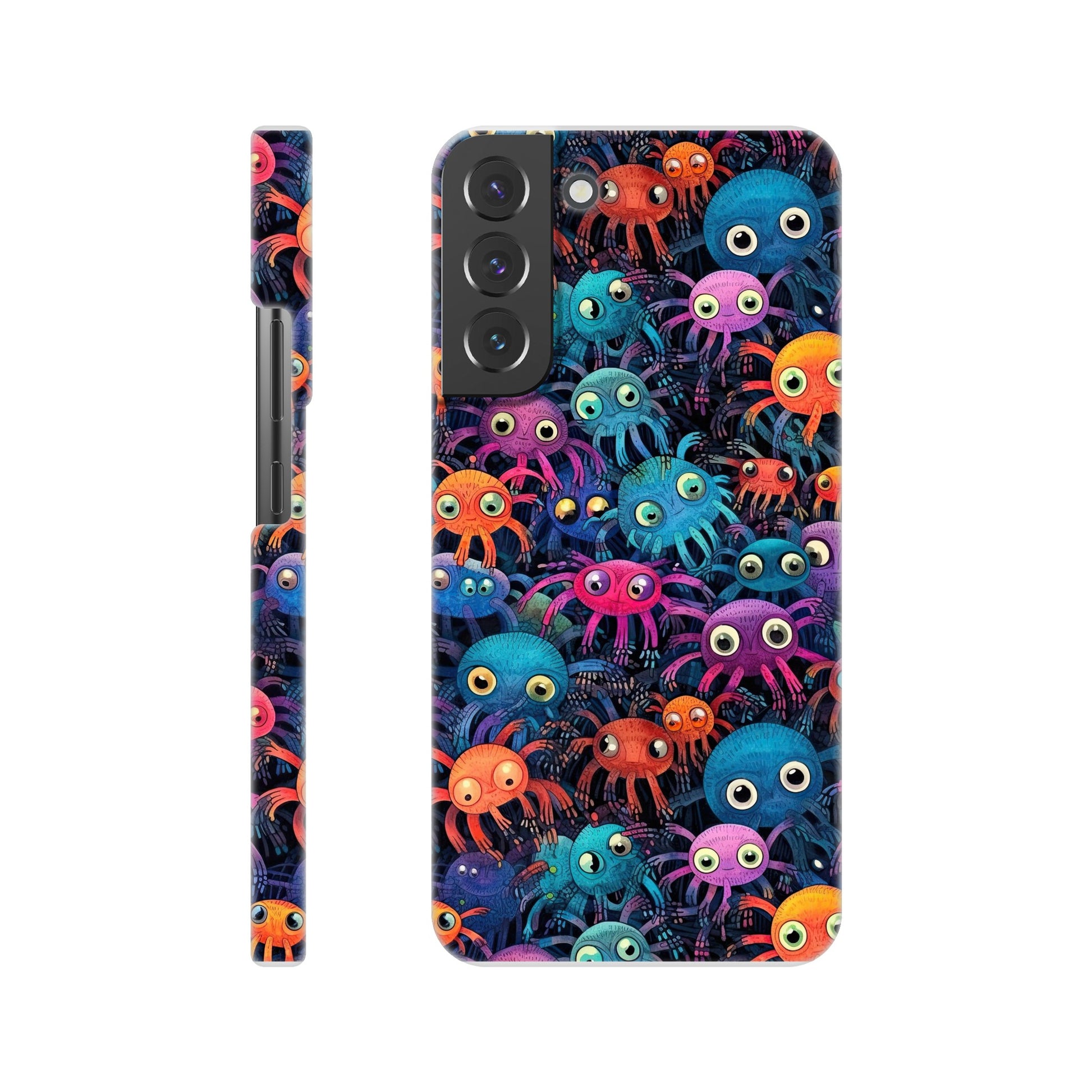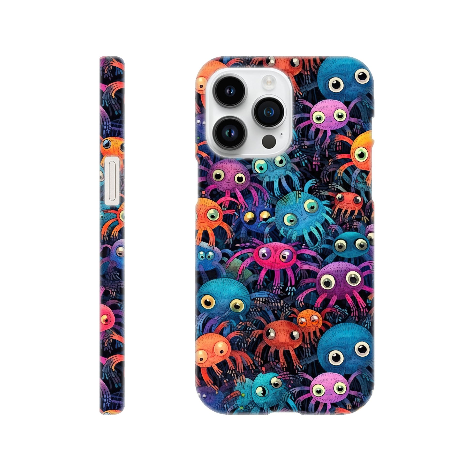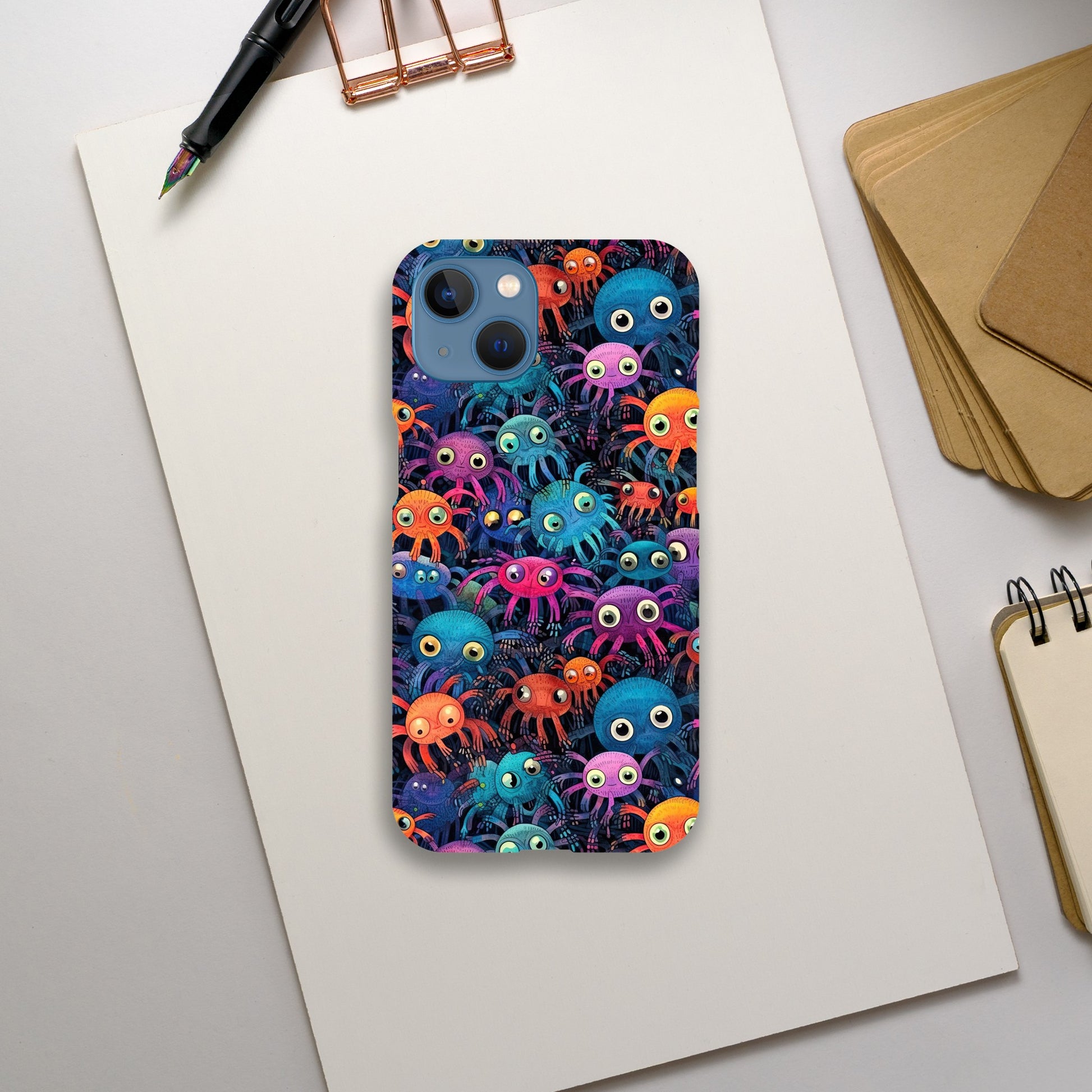 Introducing the Slim Phone Case with Colorful Hairy Spiders Pattern: Embrace your unique style and protect your phone with this striking and eye-catching phone case. Designed to impress, this slim and sleek case combines functionality with an eccentric touch, featuring a vivid and captivating hairy spiders pattern.