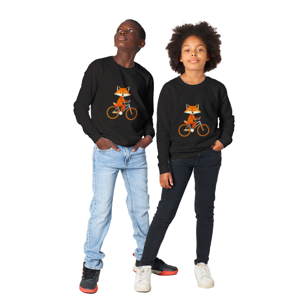 Cute Fox Riding a Bike Premium Kids Crewneck Sweatshirt