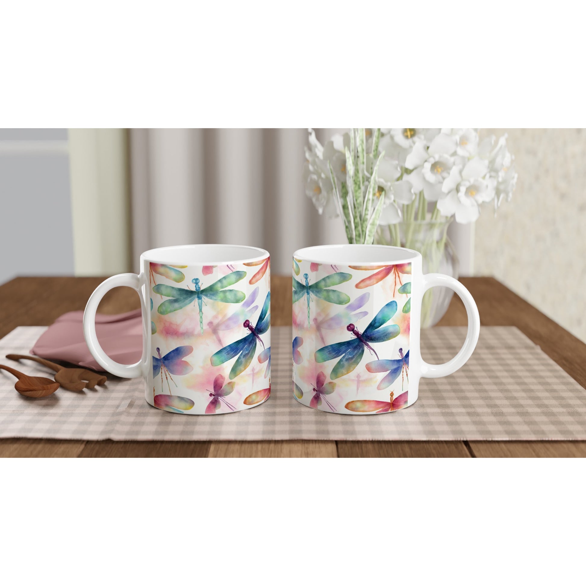Enchanting Elegance: 11oz Ceramic Mug with Watercolor Painted Dragonflies