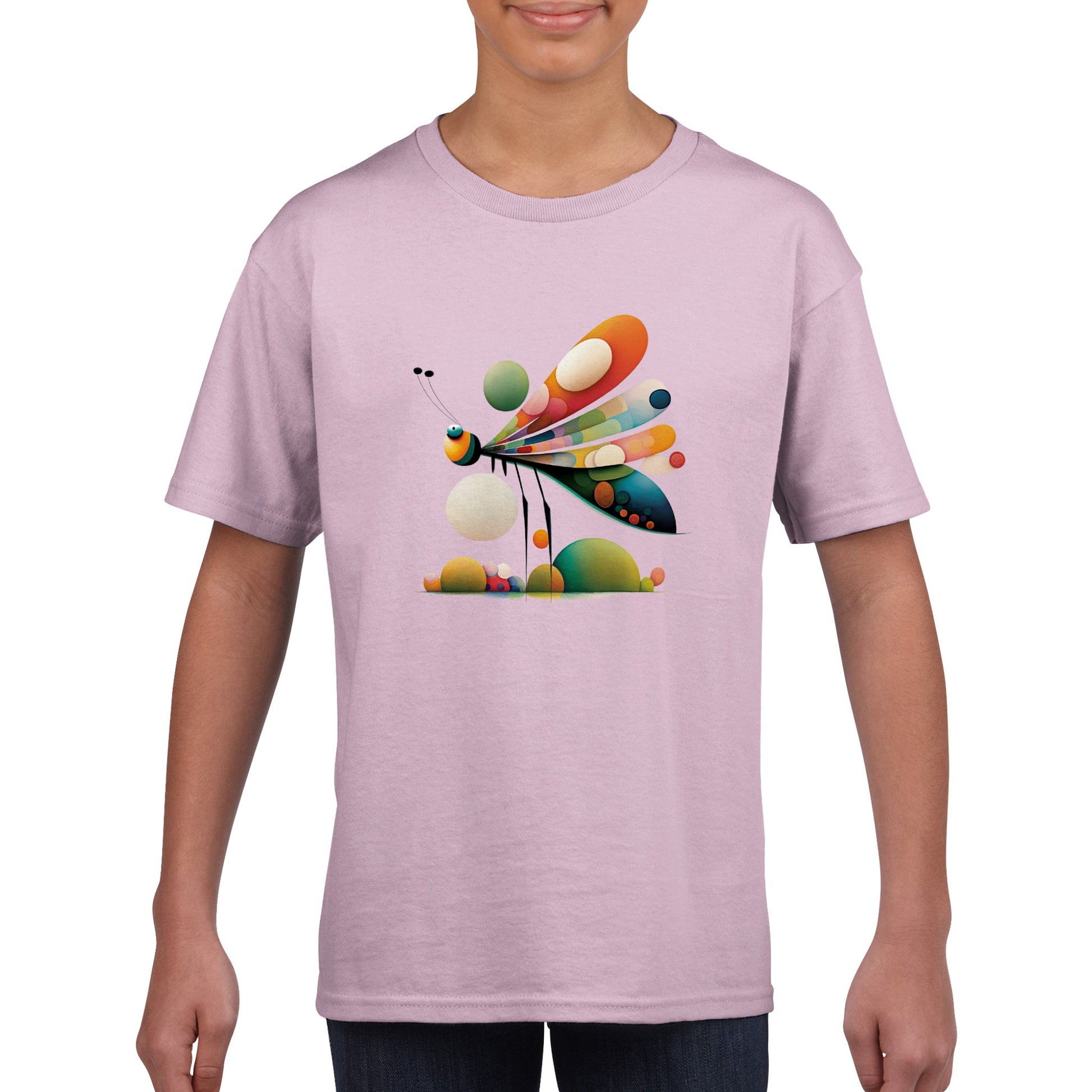 Introducing the Classic Kids Crewneck T-Shirt with Abstract Dragonfly Print - Perfect for Your Little Fashionista!