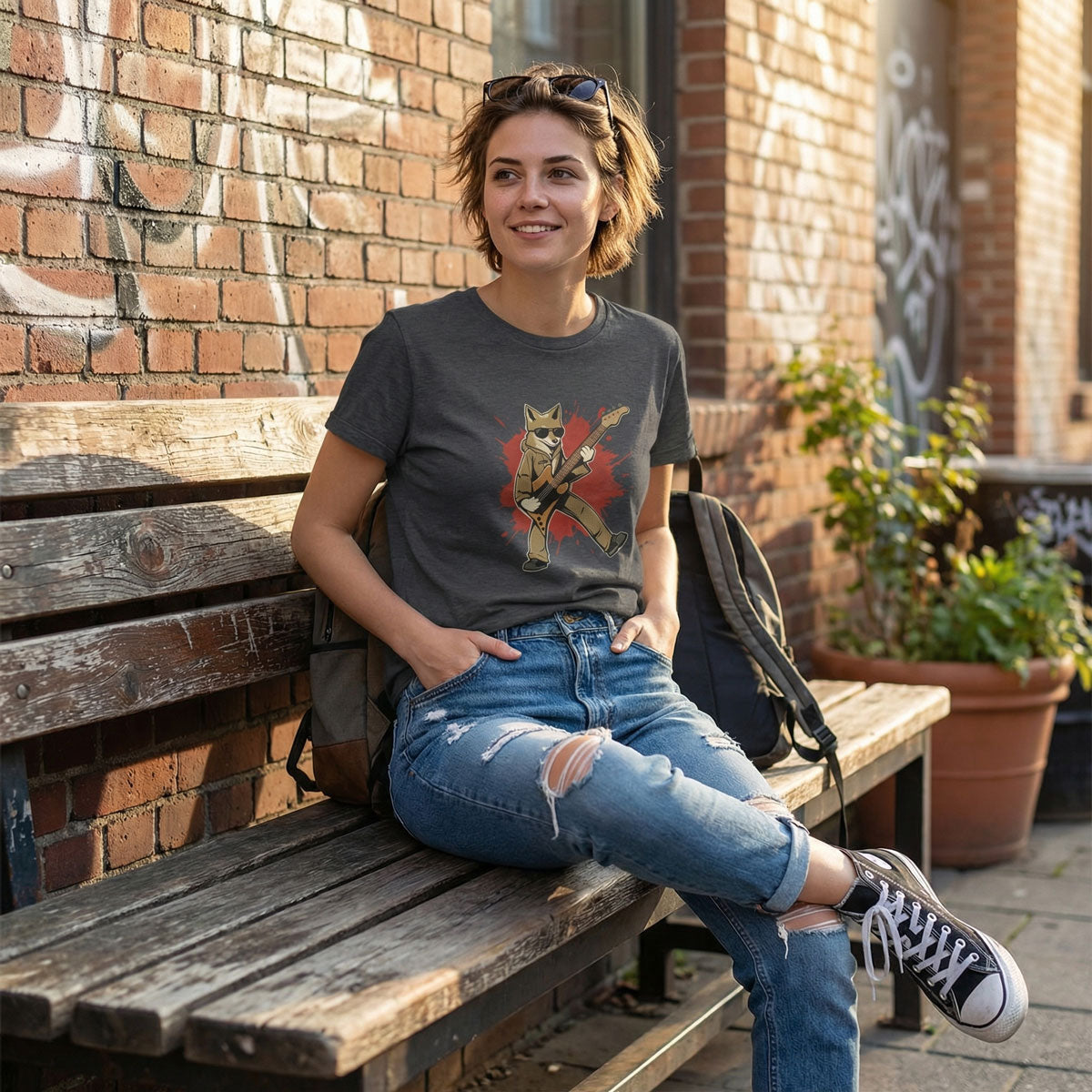 Fox Playing Bass Guitar Heavyweight Unisex Crewneck T-shirt