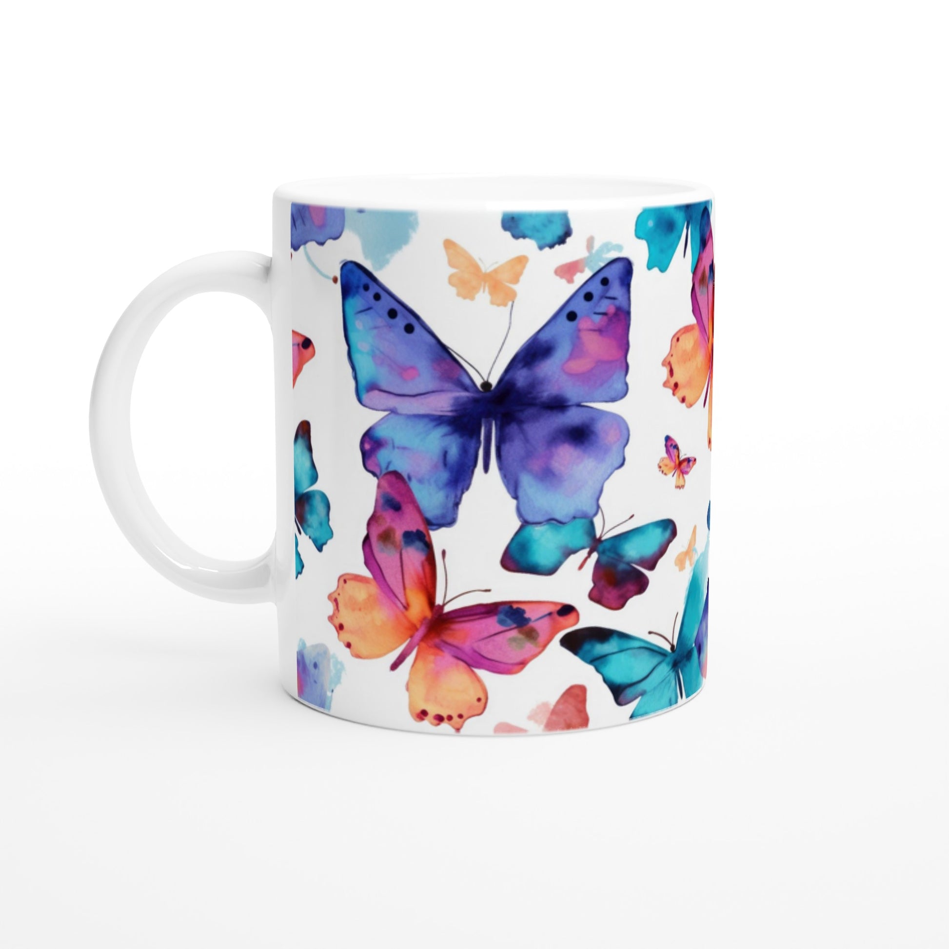 Whimsical Wings: 11oz Ceramic Mug with Watercolor Painted Butterflies