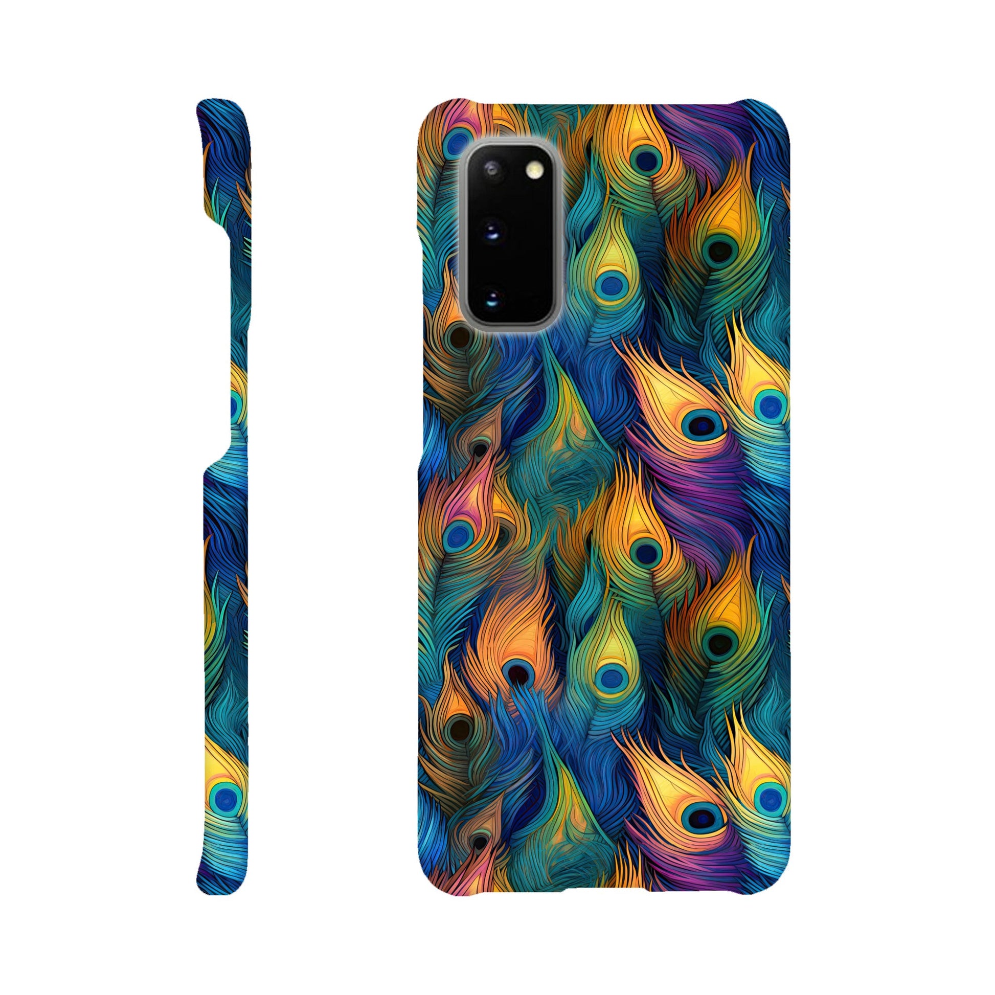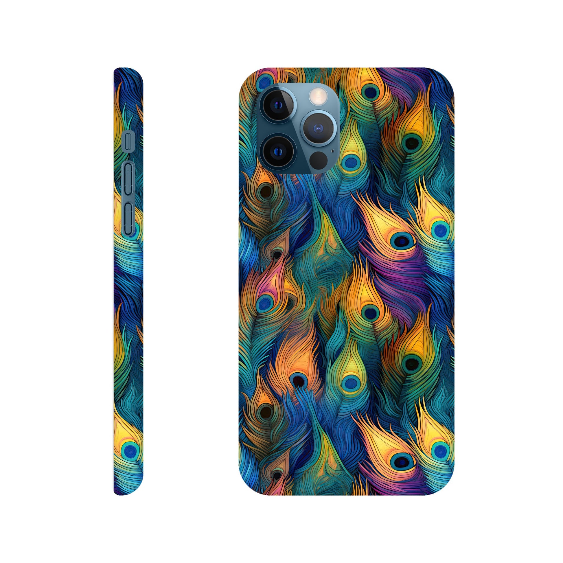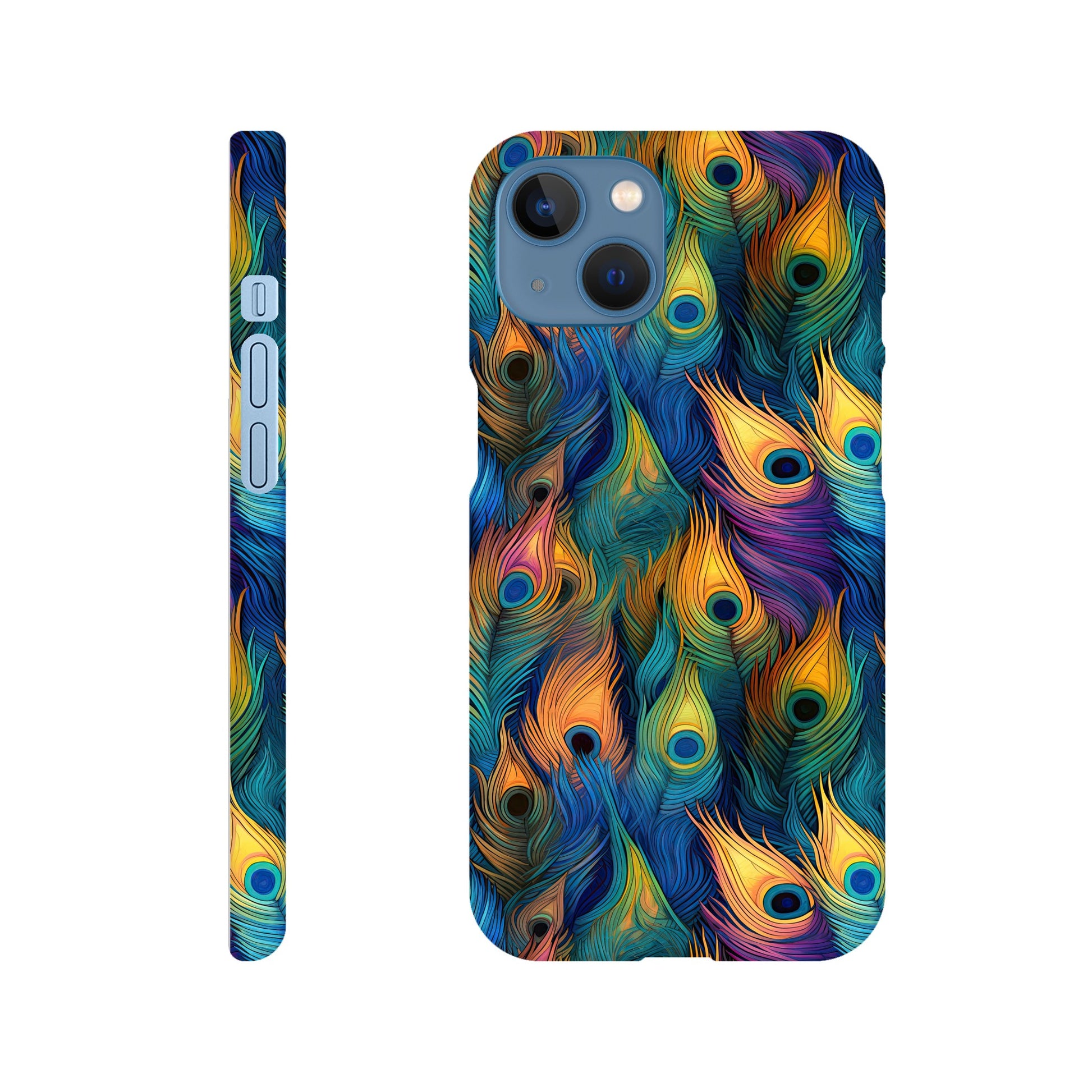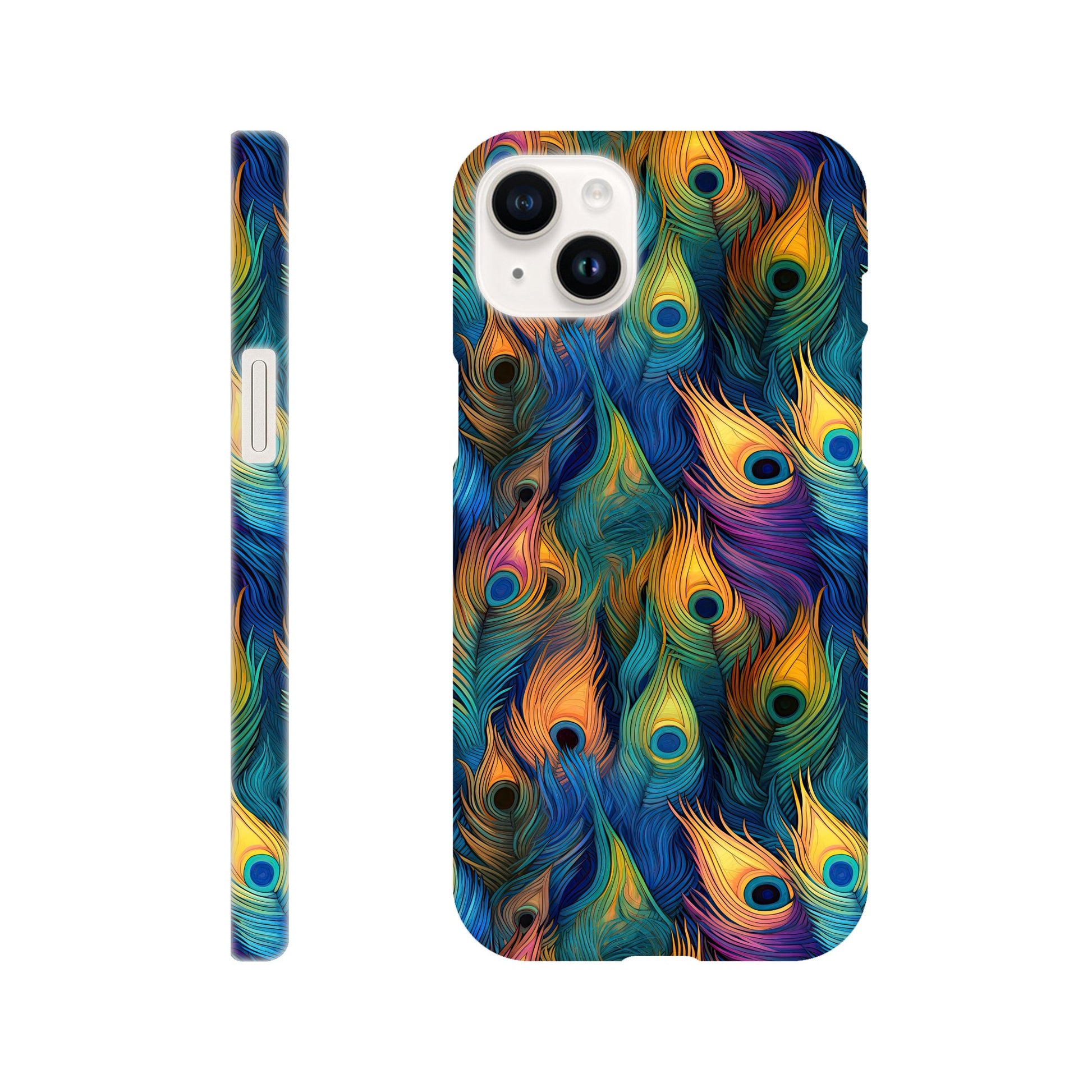 Introducing our vibrant and stylish Slim Phone Case adorned with a captivating all-over peacock feather print, designed to complement your Android and Apple devices!