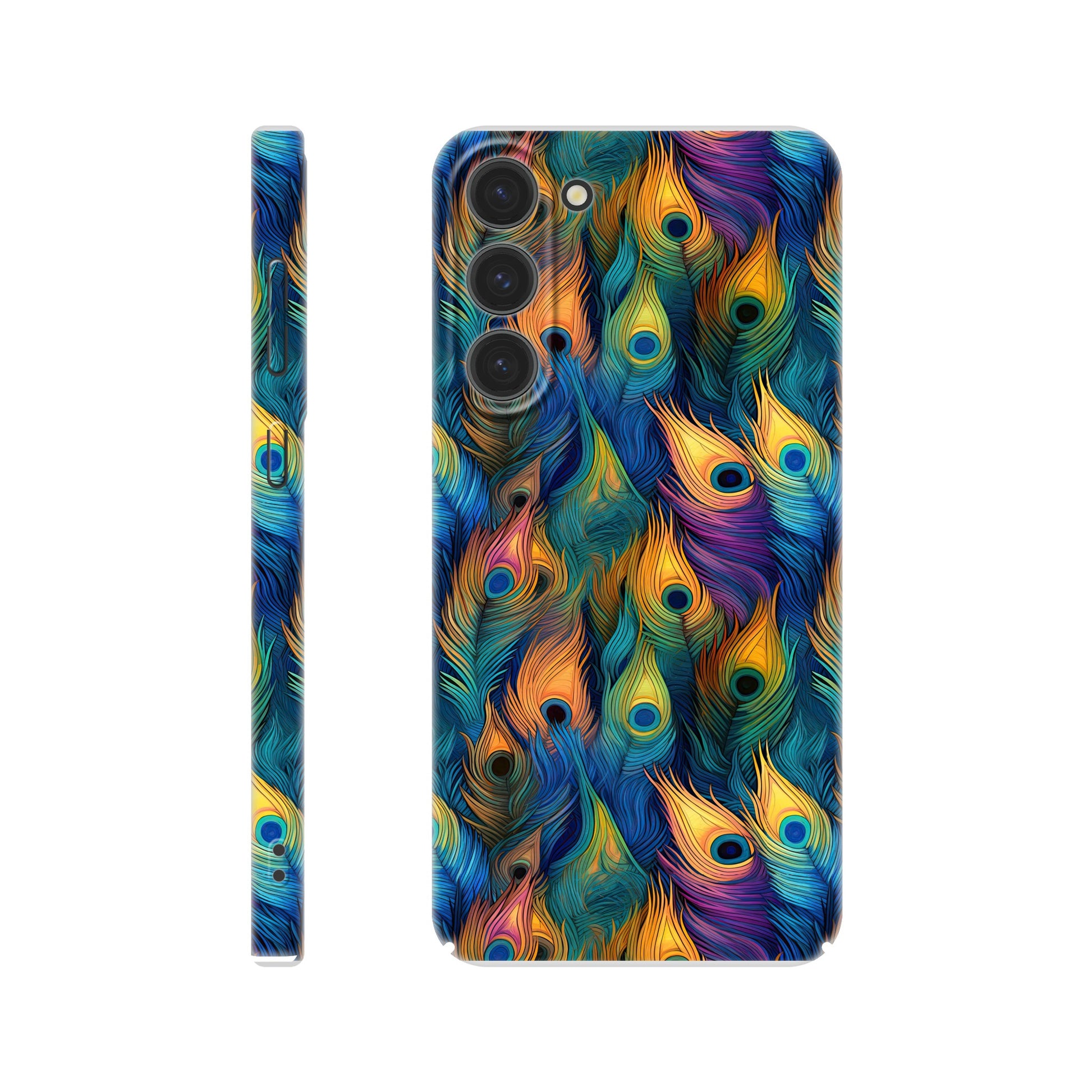 Feathered Elegance: All-Over Peacock Feather Slim Phone Case for Android and Apple