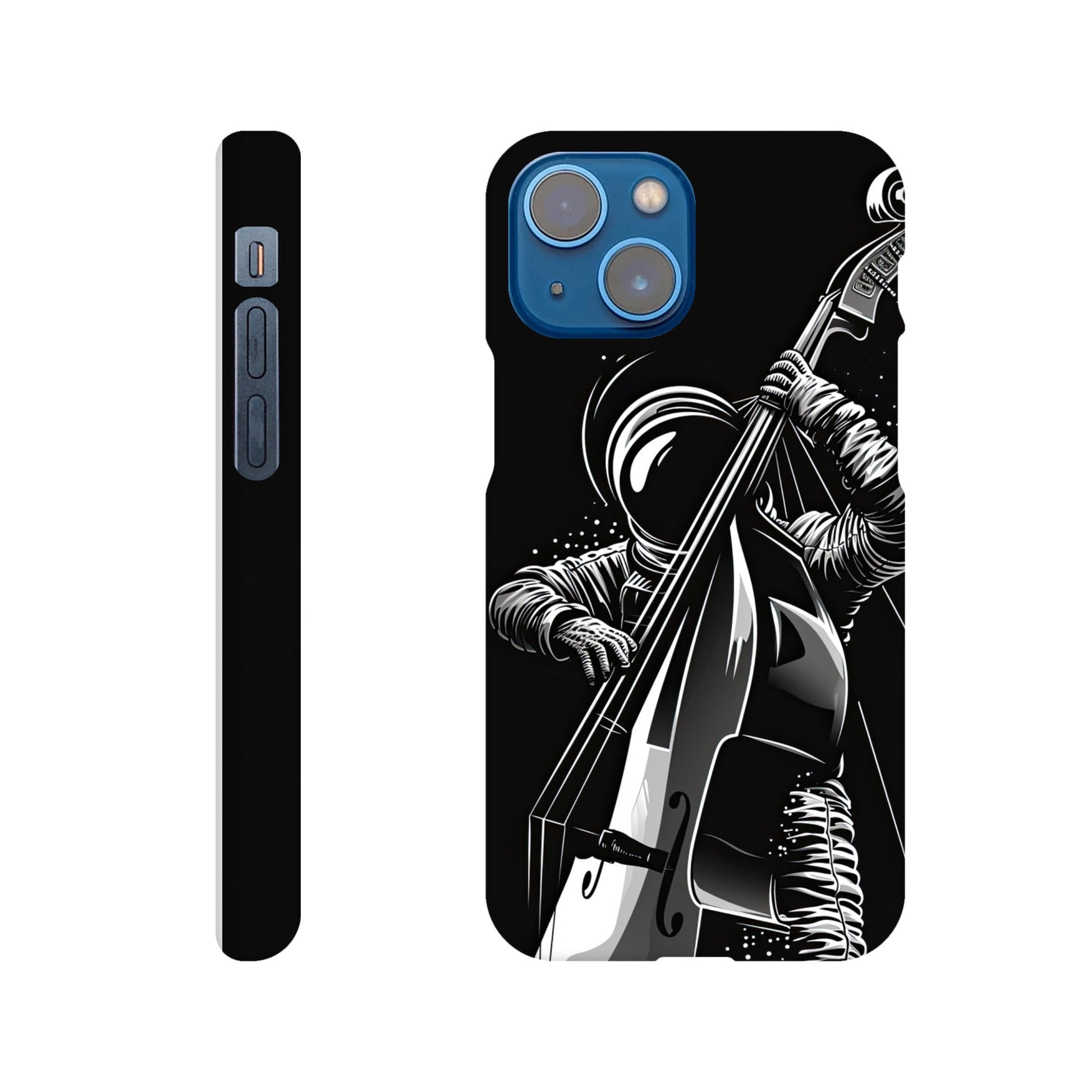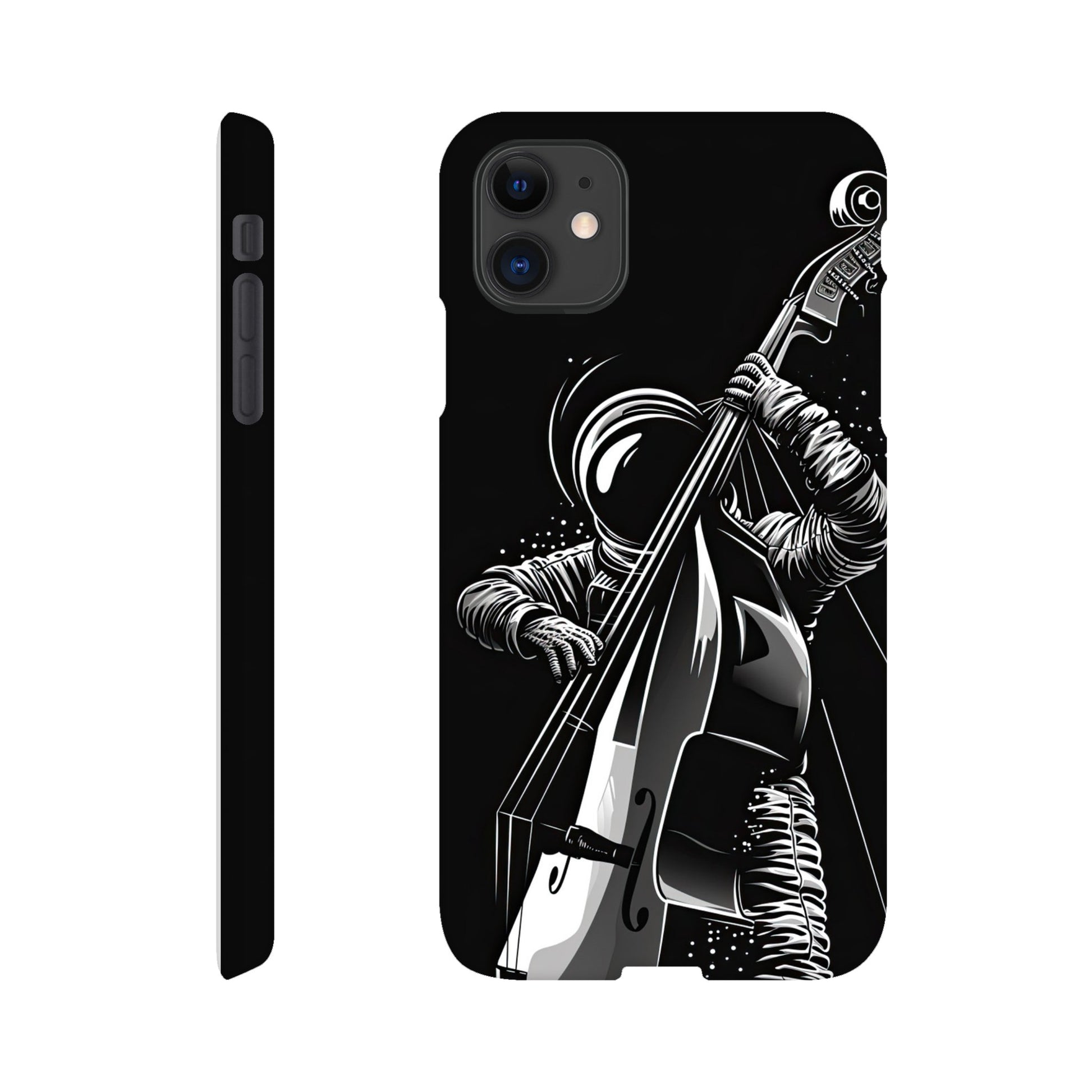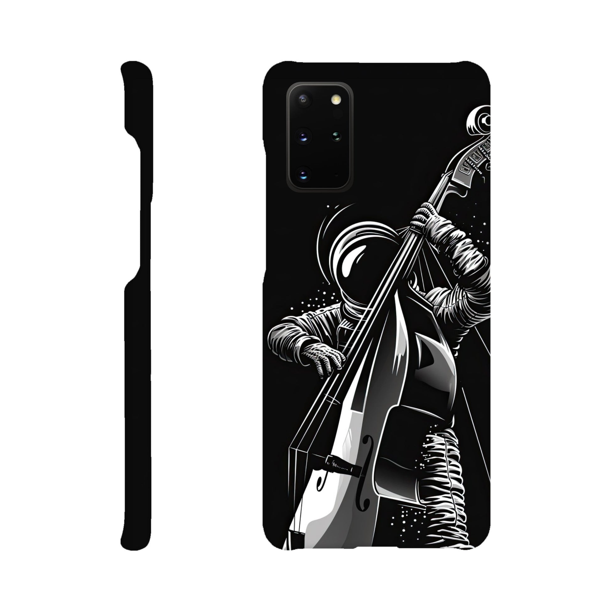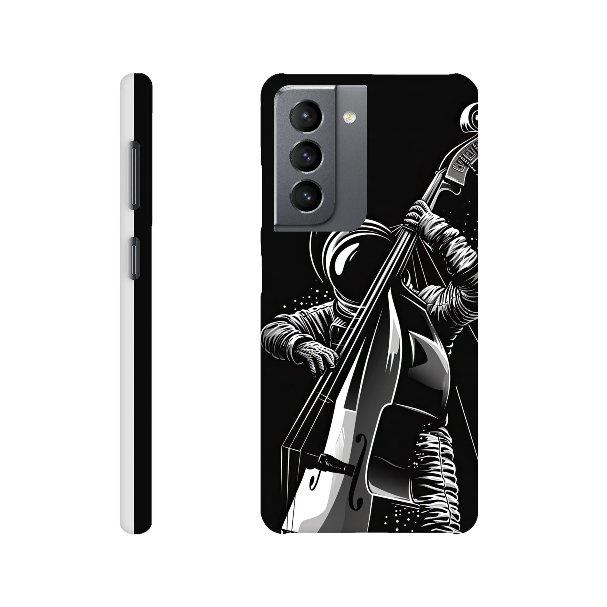 Crafted with precision and style in mind, this slim phone case is designed to seamlessly hug your device, providing a snug fit that adds minimal bulk. The vibrant and detailed illustration of a spaceman grooving on a double bass not only sets your phone apart but also sparks conversations and captures the essence of creativity and imagination.