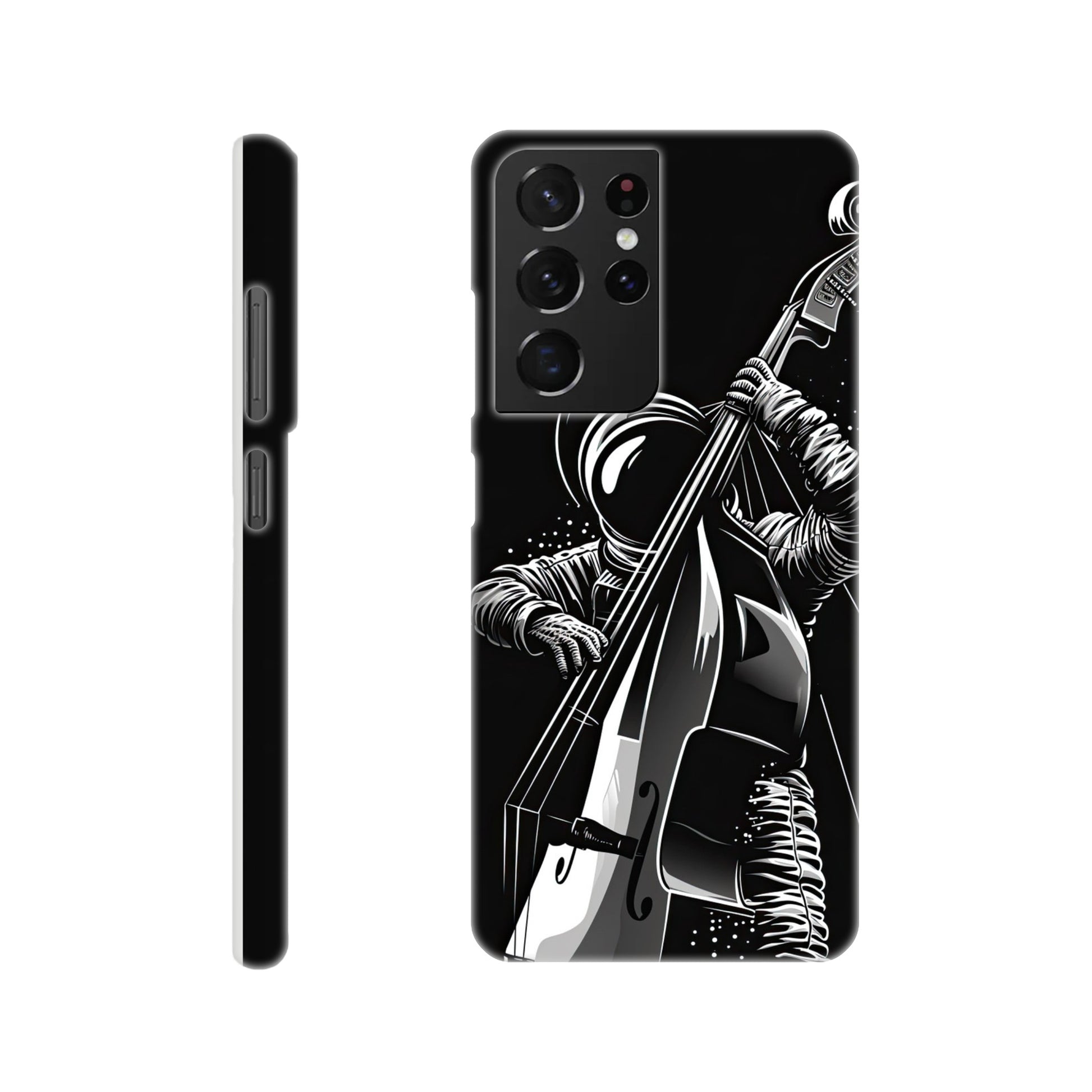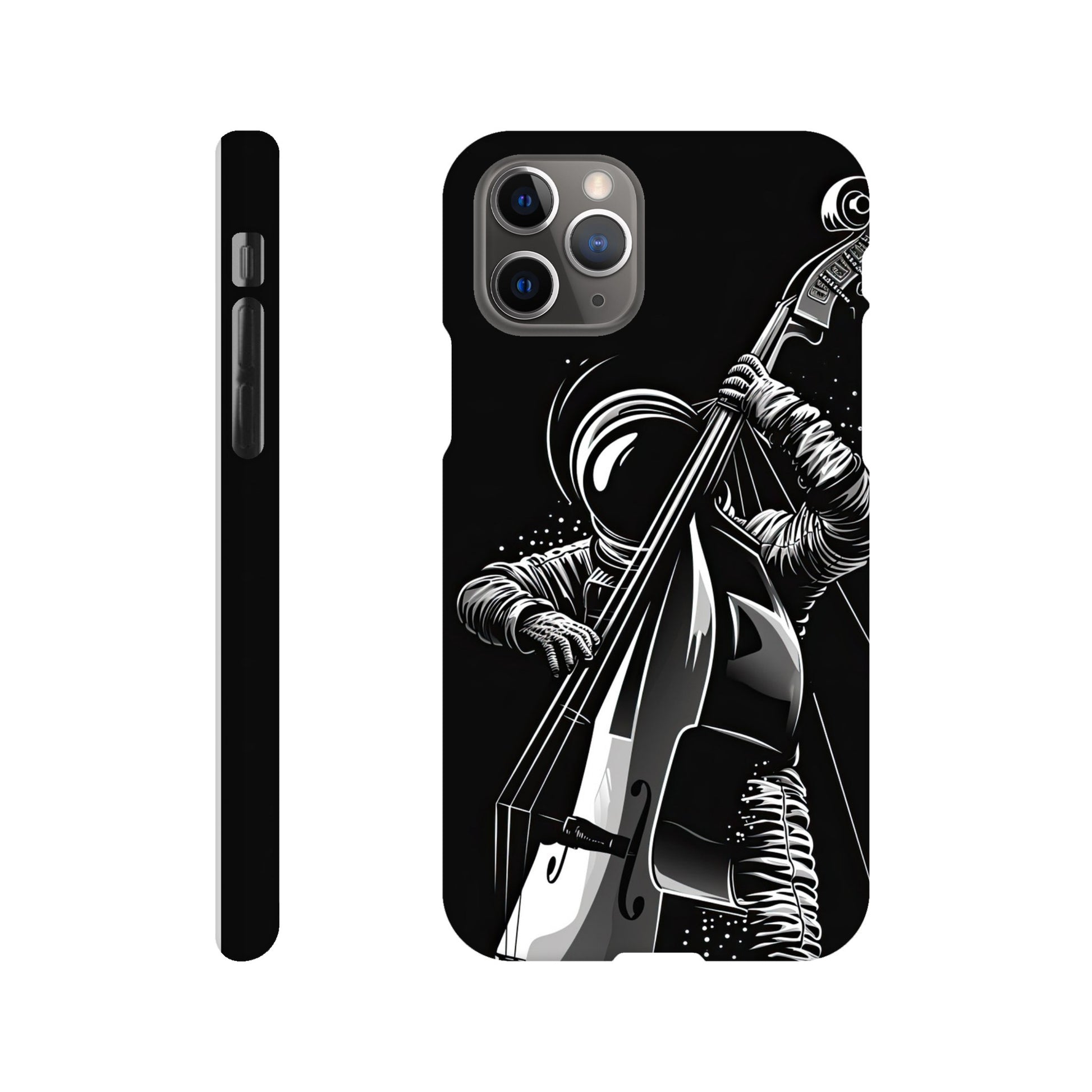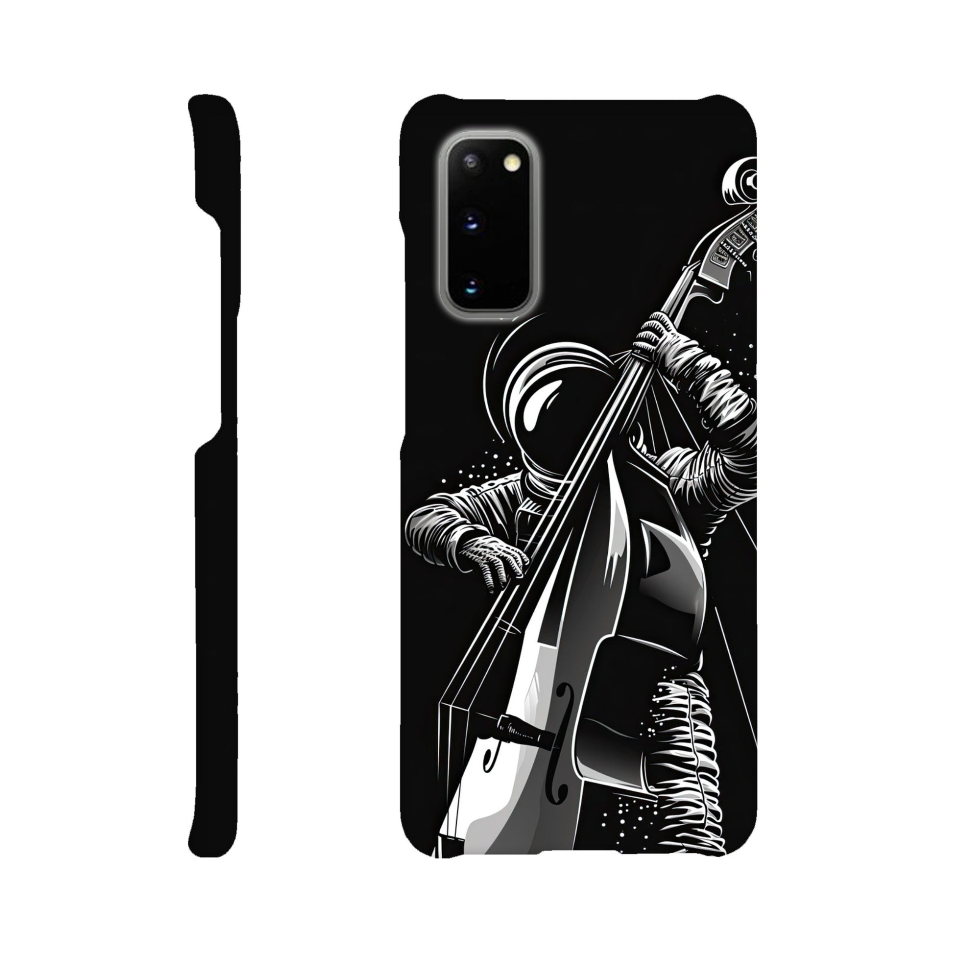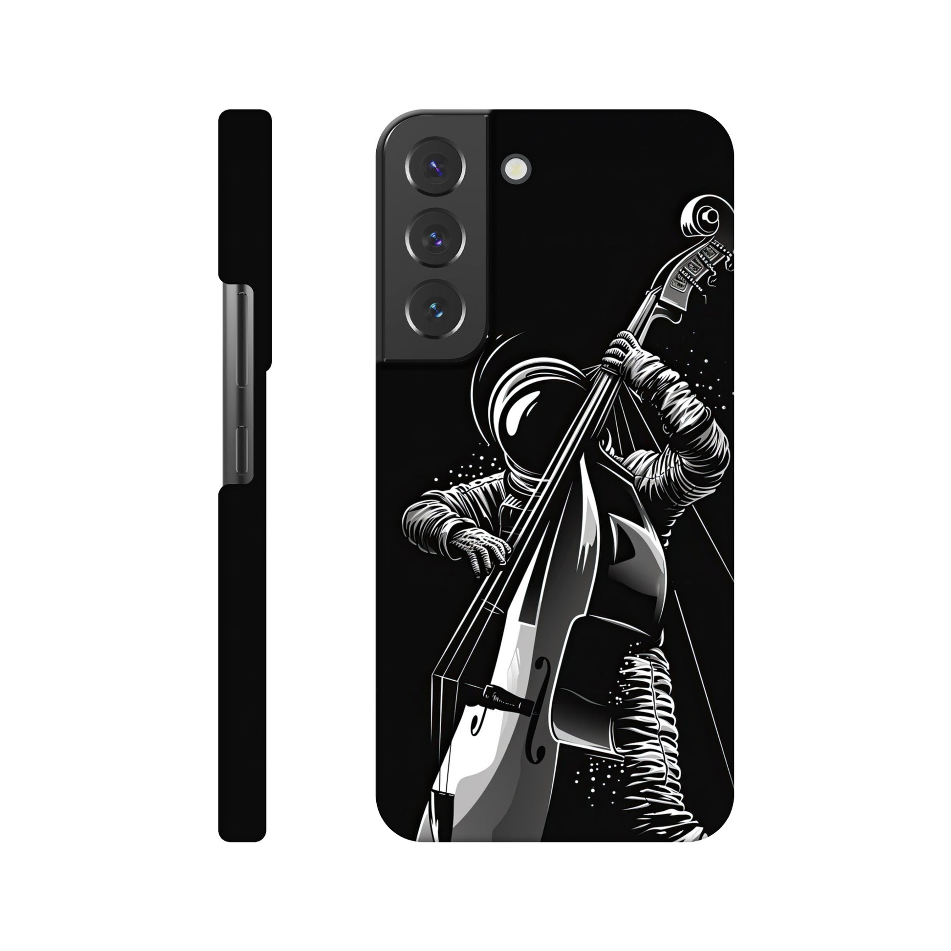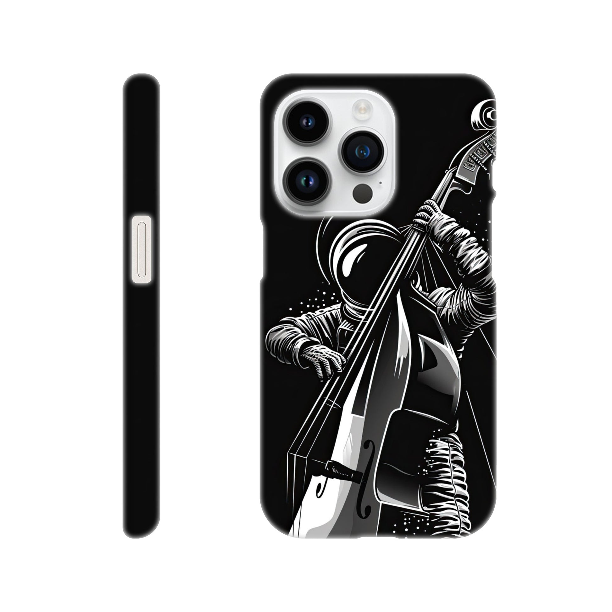 Crafted with precision and style in mind, this slim phone case is designed to seamlessly hug your device, providing a snug fit that adds minimal bulk. The vibrant and detailed illustration of a spaceman grooving on a double bass not only sets your phone apart but also sparks conversations and captures the essence of creativity and imagination.