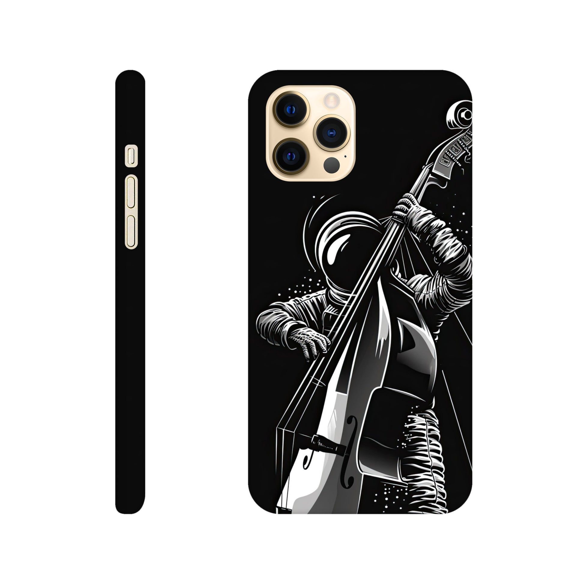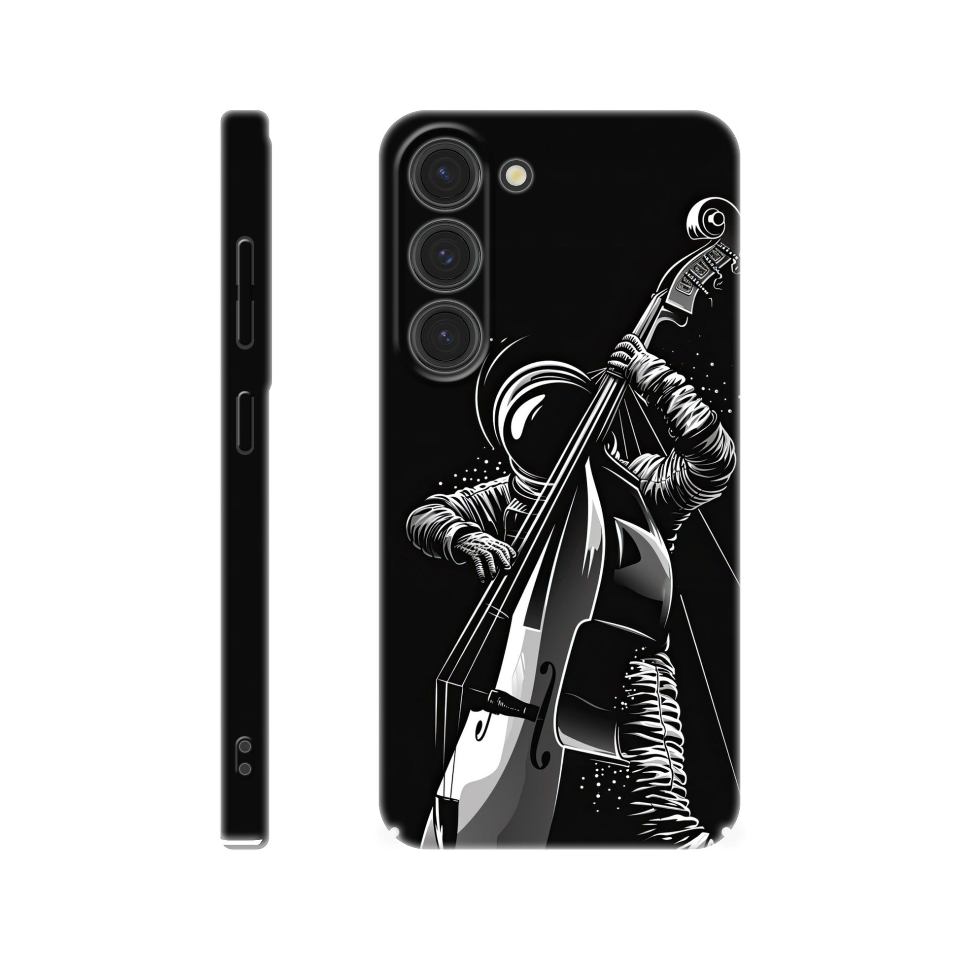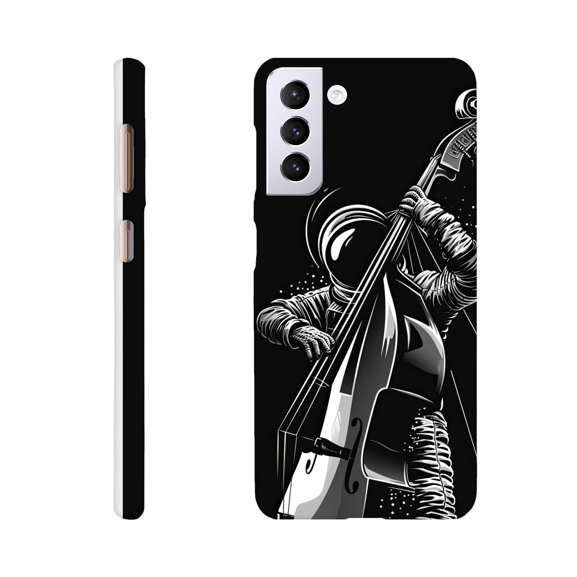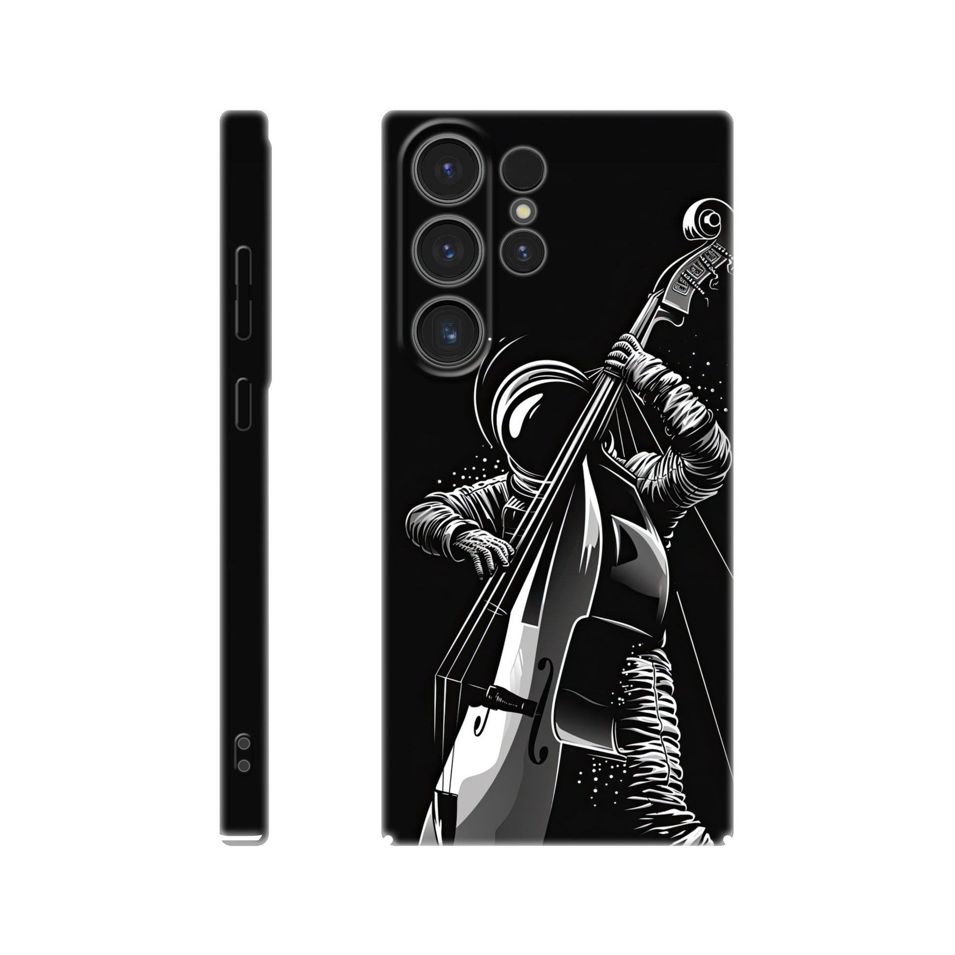 Crafted with precision and style in mind, this slim phone case is designed to seamlessly hug your device, providing a snug fit that adds minimal bulk. The vibrant and detailed illustration of a spaceman grooving on a double bass not only sets your phone apart but also sparks conversations and captures the essence of creativity and imagination.